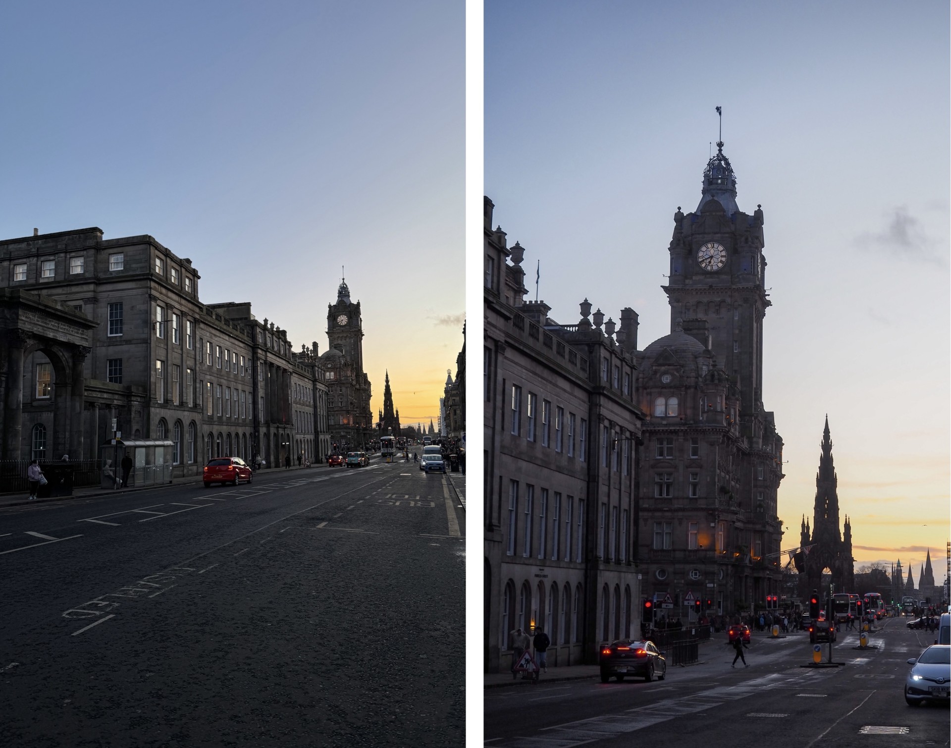 C’était ma première fois à Édimbourg et j’y suis allée fin mars. La météo était plutôt changeante : un moment il faisait super beau, deux heures après c’était la pluie, puis à nouveau le retour du soleil. Par contre, il faisait très froid, avec un vent glacial lors de notre venue, mais on a quand même eu de la chance d’avoir le soleil au rendez-vous une bonne partie du week-end !